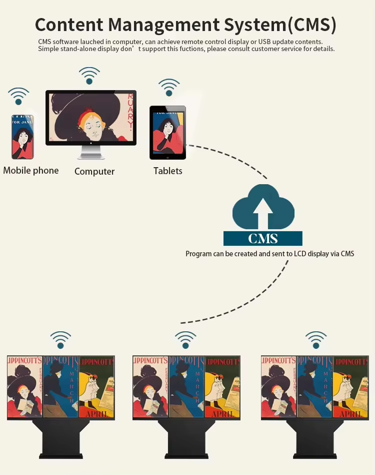 Pre chodcov a vozidlá na cestách sa navrhuje 75-palcová propagácia reklamnej propagácie 4K 4K a informácie. Zároveň môže poskytnúť denný dopyt mapy a informačného dotazu